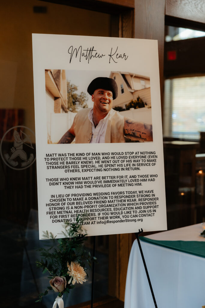 A memorial display honoring a lost friend created a quiet, meaningful corner in the room; a beautiful reminder of a love held, love remembered, and a love carried forward.