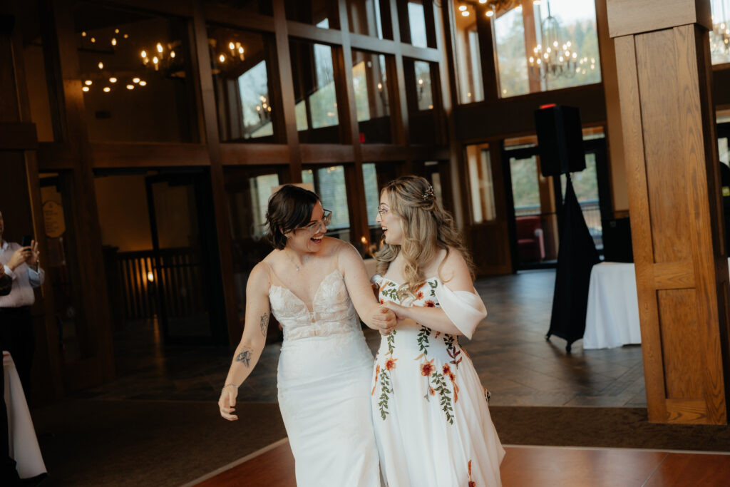 The reception took place at The Lodge, where the cozy mountain atmosphere created the perfect setting for the deeply emotional evening. The energy of the people filled the space more than anything else. Guests were off their phones, genuinely present, and fully invested in celebrating Angela and Jess.